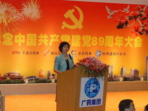 大會(huì)首先由廣藥集團(tuán)紀(jì)委書記、廣州藥業(yè)黨委書記楊秀微作紀(jì)念中國(guó)共產(chǎn)黨建黨89周年暨黨員紀(jì)律教育月活動(dòng)動(dòng)員講話。楊秀微書記在講話中回顧了我黨89年所走過的光輝歷程,勉勵(lì)在座的黨員,在迎接我們黨自己的光輝節(jié)日到來的時(shí)刻,更要牢記當(dāng)代中國(guó)共產(chǎn)黨人所肩負(fù)的歷史責(zé)任,準(zhǔn)確把握我們所處的歷史方位,清醒認(rèn)識(shí)我們面臨的形勢(shì)和任務(wù),在新的歷史條件下保持和進(jìn)一步提高企業(yè)黨組織的政治地位,充分發(fā)揮黨組織領(lǐng)導(dǎo)經(jīng)濟(jì)建設(shè)發(fā)展的堅(jiān)強(qiáng)核心作用,緊緊圍繞廣藥集團(tuán)的“百億工程”整體目標(biāo),認(rèn)真抓好各項(xiàng)工作,克服困難,把握醫(yī)藥行業(yè)大發(fā)展的機(jī)遇期,繼續(xù)保持企業(yè)又好又快發(fā)展的良好態(tài)勢(shì)。楊書記在講話中還對(duì)企業(yè)如何認(rèn)真抓好今年的黨員紀(jì)律教育學(xué)習(xí)月活動(dòng),加強(qiáng)企業(yè)的廉政建設(shè),反腐倡廉工作進(jìn)行了動(dòng)員,提出了要求。
