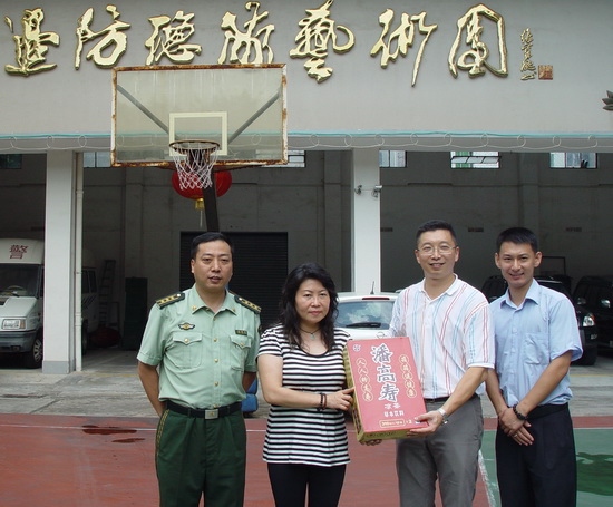 7月15日,“八一”建軍節將至,我司工會、營銷中心代表公司向武警廣東邊防總隊藝術團送上節日的慰問,為藝術團武警戰士們送上我司消暑的涼茶、清熱的龜苓膏、潤嗓的潤喉糖等。