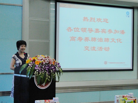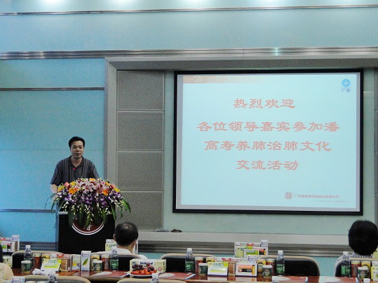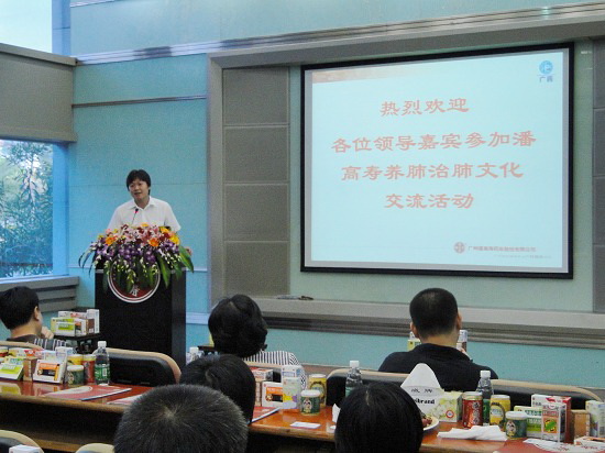 盧其福高級經理再以ppt生動介紹潘高壽公司的發展歷程、實力,重點介紹潘高壽養肺治肺的文化。
