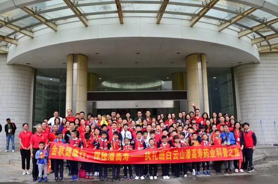 2018 年 11 月 17 日,職能三支部聯合生產黨支部與廣州市番禺區廠商會組織開展了“金秋健康行,探秘潘高壽”科普活動。為了更多地了解番禺企業,市橋中心小學及黃編小學兩所學校百余名師生及家長走訪百年老字號白云山潘高壽藥業。此次活動公司黨委委員——盧其福現場開展養肺護肺文化講座,科普秋冬季養肺護肺養生知識。